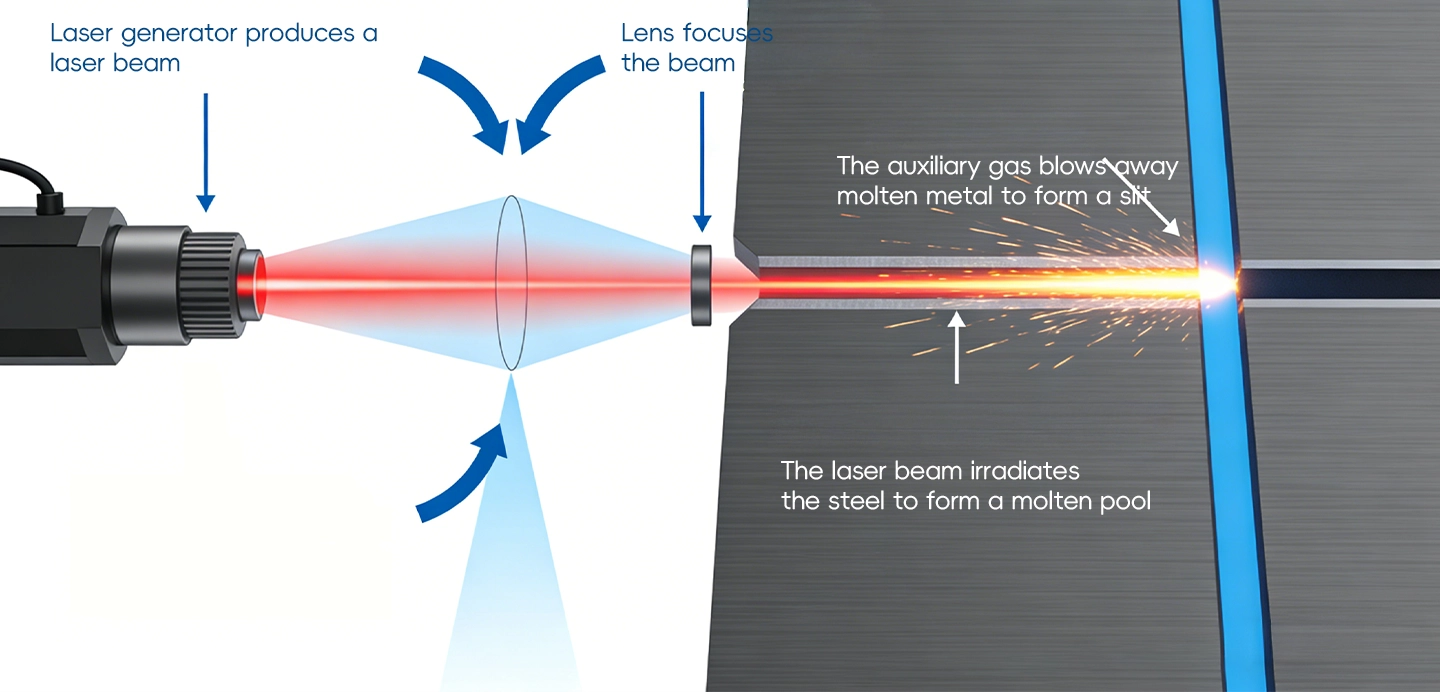 When the high – energy laser beam strikes the steel surface, it rapidly heats up the steel. The heat causes the steel to melt and vaporize almost instantaneously. The melted and vaporized steel is then blown away from the cut area by a jet of assist gas, such as oxygen or nitrogen. This leaves behind a clean, precise cut.